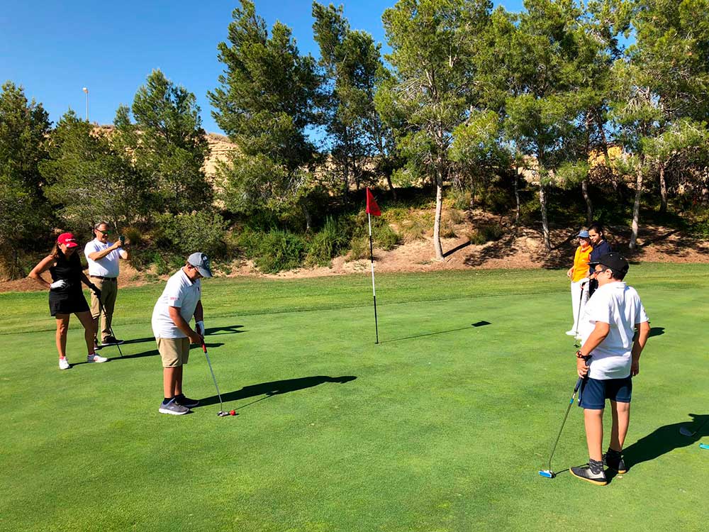 Estos jugadores tienen pequeñas dificultades físicas que les hacen la vida un poco más complicada que al resto, pero con apoyo de sus familias y con iniciativas, a petición de María Dolores Durán y patrocinada por el Grupo Huertas, de formar una escuela de golf les, hace su dolencia más llevadera.