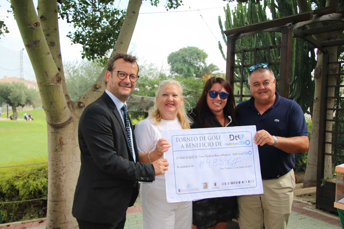En nombre del Club de Golf de Torre Pacheco y de la Fundación DiabetesCERO queremos hacerte partícipe del éxito obtenido en el primer Torneo de Golf a nivel nacional organizado para esta causa. Asimismo, trasladarte nuestro más sincero agradecimiento, ya que con tu ayuda hemos conseguido recaudar la cantidad de 4.839€ que se entregó en un cheque a la Fundación durante la entrega de premios, del pasado 7 de octubre.